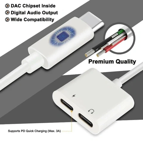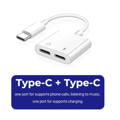 Functions: 2-in-1 Type-C Audio & Charge Adapter (supports phone calls, charging, listening to music, and wire control)