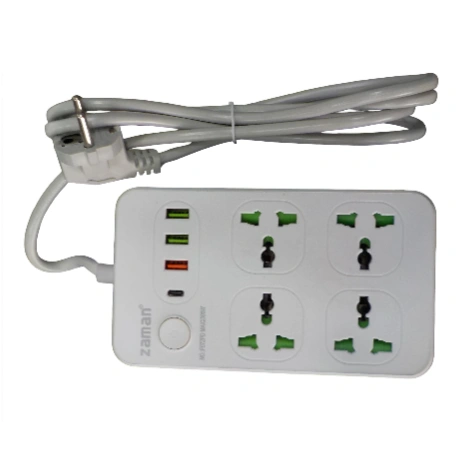 A 3000W DEFENDER SERIES power socket with 4 AC outlets, 3 USB-A ports, and 1 USB-C port is a high-power extension strip or surge protector designed for simultaneously powering and charging multiple devices, including high-wattage appliances and fast-charging electronics.
