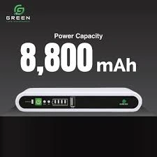 A Green 8800mAh DC UPS is a portable power backup for routers, modems, and CCTV, featuring an 8800mAh battery for up to 8 hours of backup, multi-voltage DC outputs (5V, 9V, 12V, 15V/24V POE), and USB ports, with built-in protection against overcharging and short circuits for uninterrupted internet during power cuts.