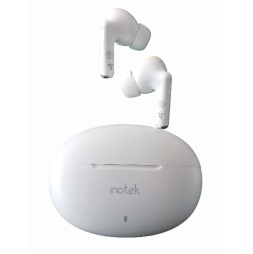 The Intek TEK 900 v5.3 earbuds feature Bluetooth 5.3, Active Noise Cancellation (ANC) with Quad Mic ENC, and a Type-C charging port. The charging case provides an extended battery life of up to 5-6 hours total playback time.