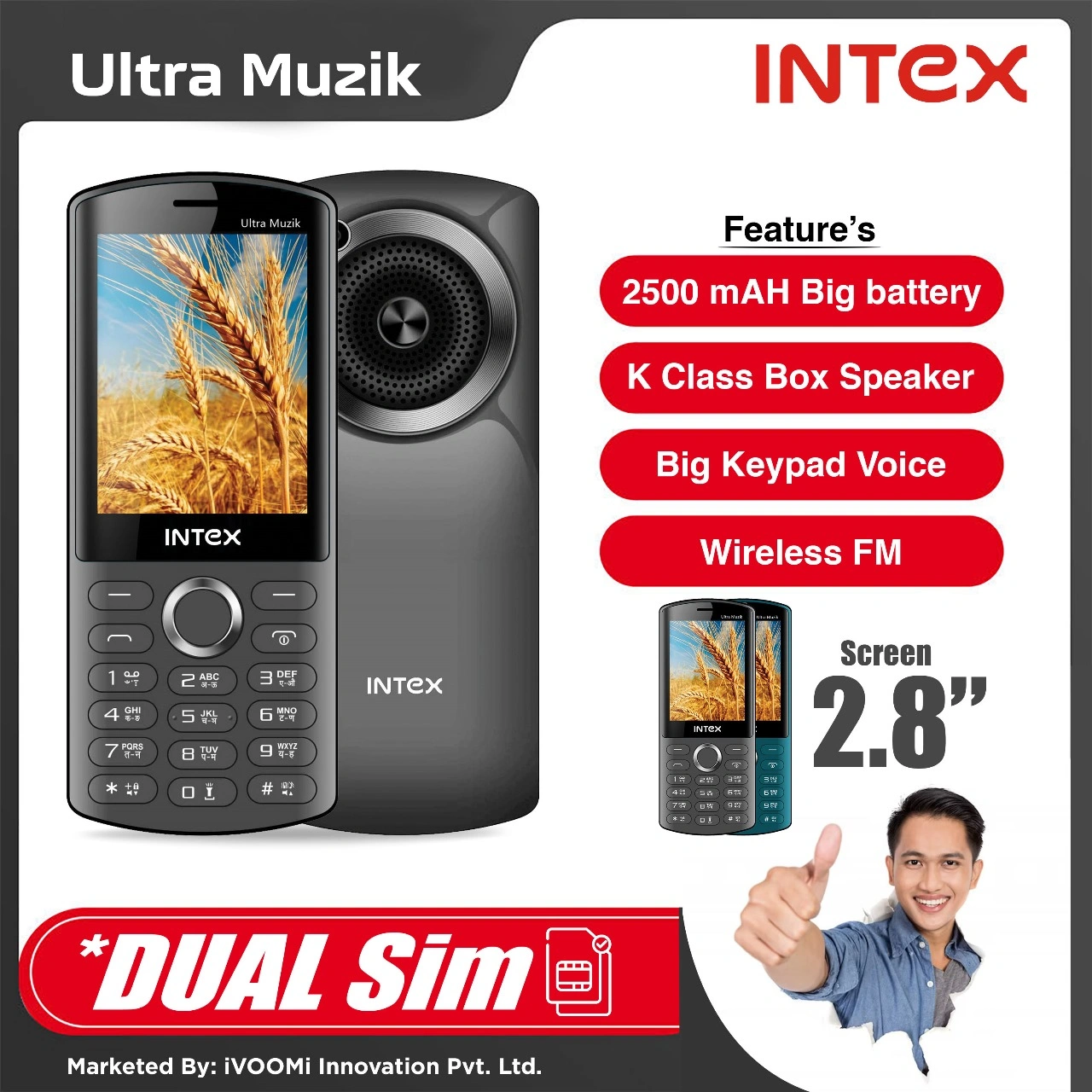 The Intex Ultra Muzik is a basic feature phone designed for reliable communication and multimedia playback, featuring a 2.8-inch display, dual SIM support, a camera, and a large battery.