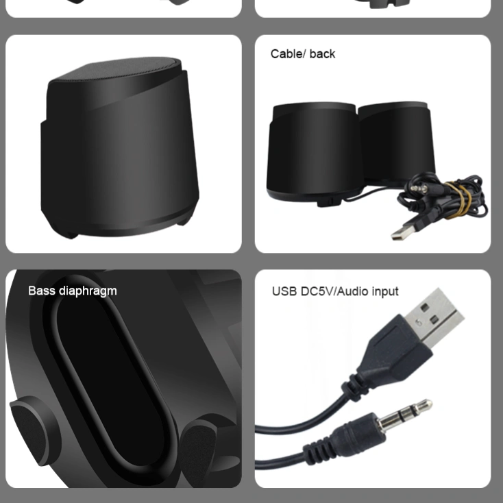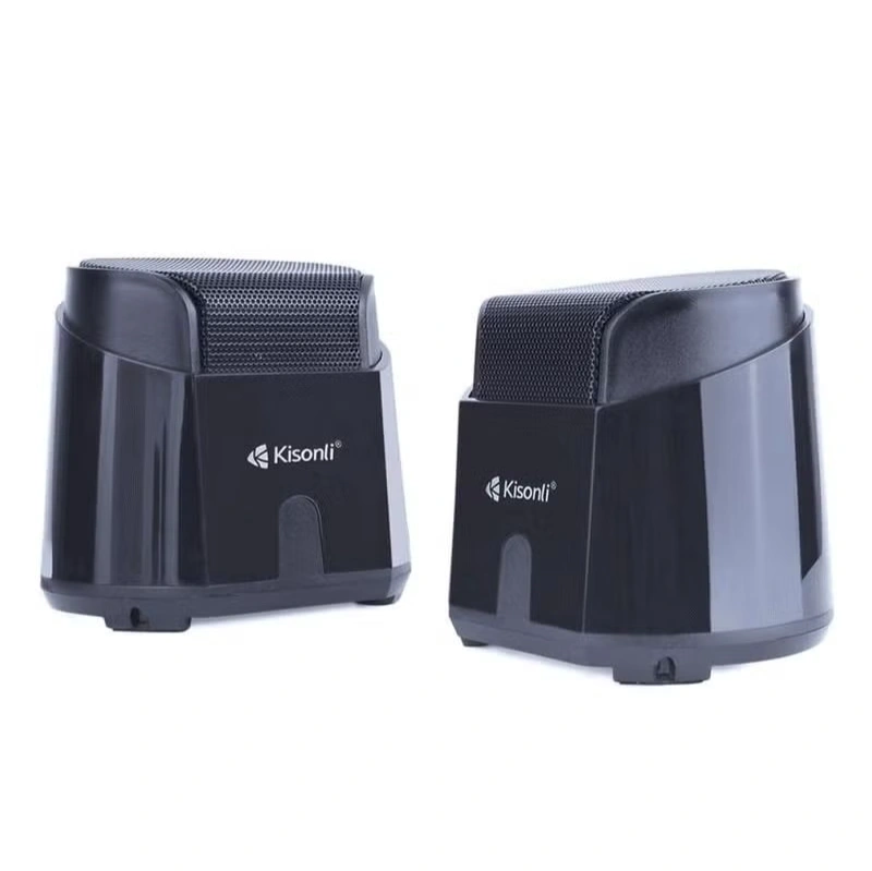 The Kisonli K500 is a compact, wired 2.0 computer speaker system featuring USB power and AUX input, delivering clear stereo sound with up to 6W total power (3W x 2), a wide 20Hz-20kHz frequency range, and low distortion, ideal for PCs, laptops, and mobile devices for music, movies, and gaming.