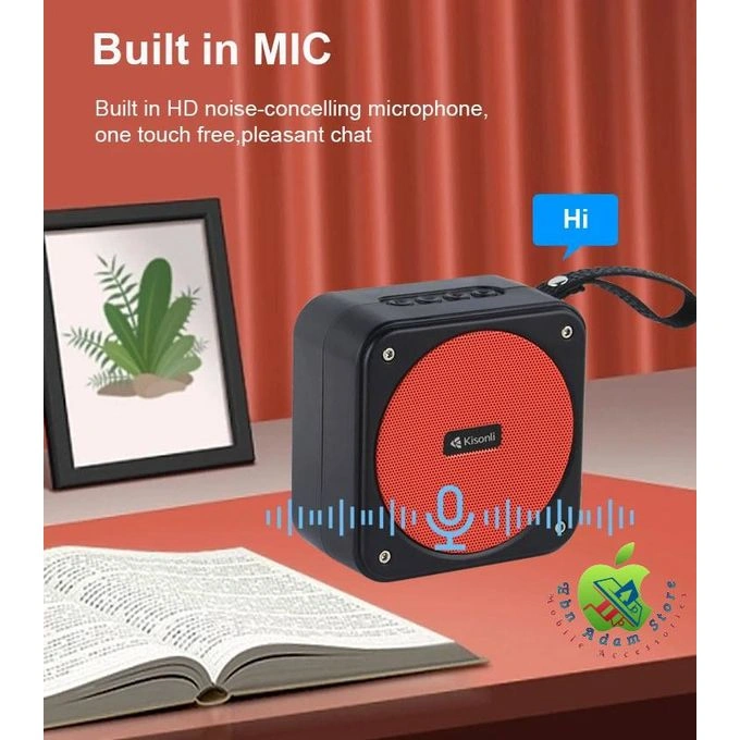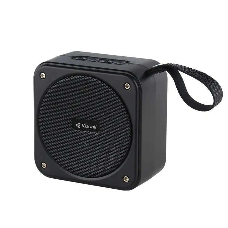 The Kisonli S21 is a mini portable Bluetooth speaker (5W) with multiple playback options (BT, TF Card, USB, FM Radio), featuring Bluetooth 5.3, a 500mAh battery for 2-4 hours playtime, a built-in mic for calls, and a compact design, ideal for on-the-go listening with clear sound and bass.