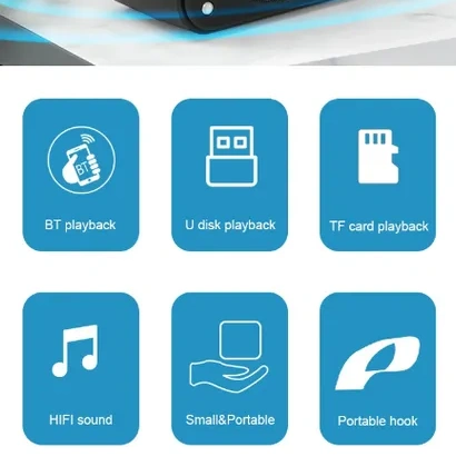Connectivity: Bluetooth, TF Card, U Disk (USB), AUX, FM Radio
