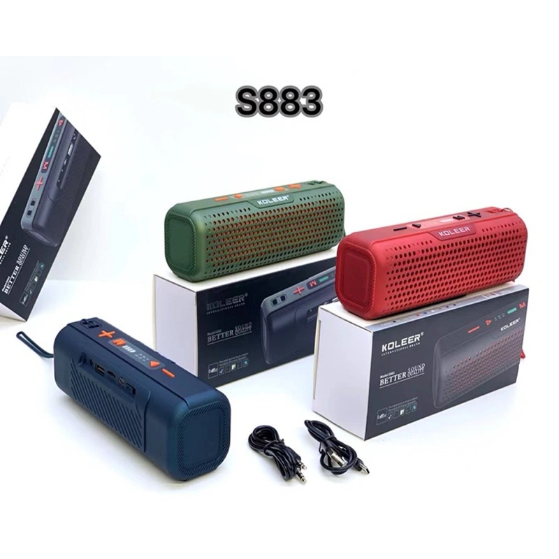 The Koleer S883 is a portable Bluetooth speaker featuring Bluetooth 5.0/5.1, 5W (x2) power, deep bass, TWS for stereo pairing, and multiple inputs (AUX, USB, TF Card, FM Radio) with a 1200mAh battery for 3-4 hrs playback, USB-C charging, and a built-in mic for hands-free calls, offering good sound in a compact, versatile package.