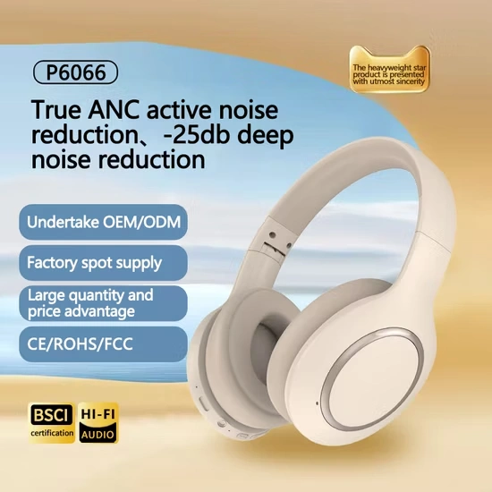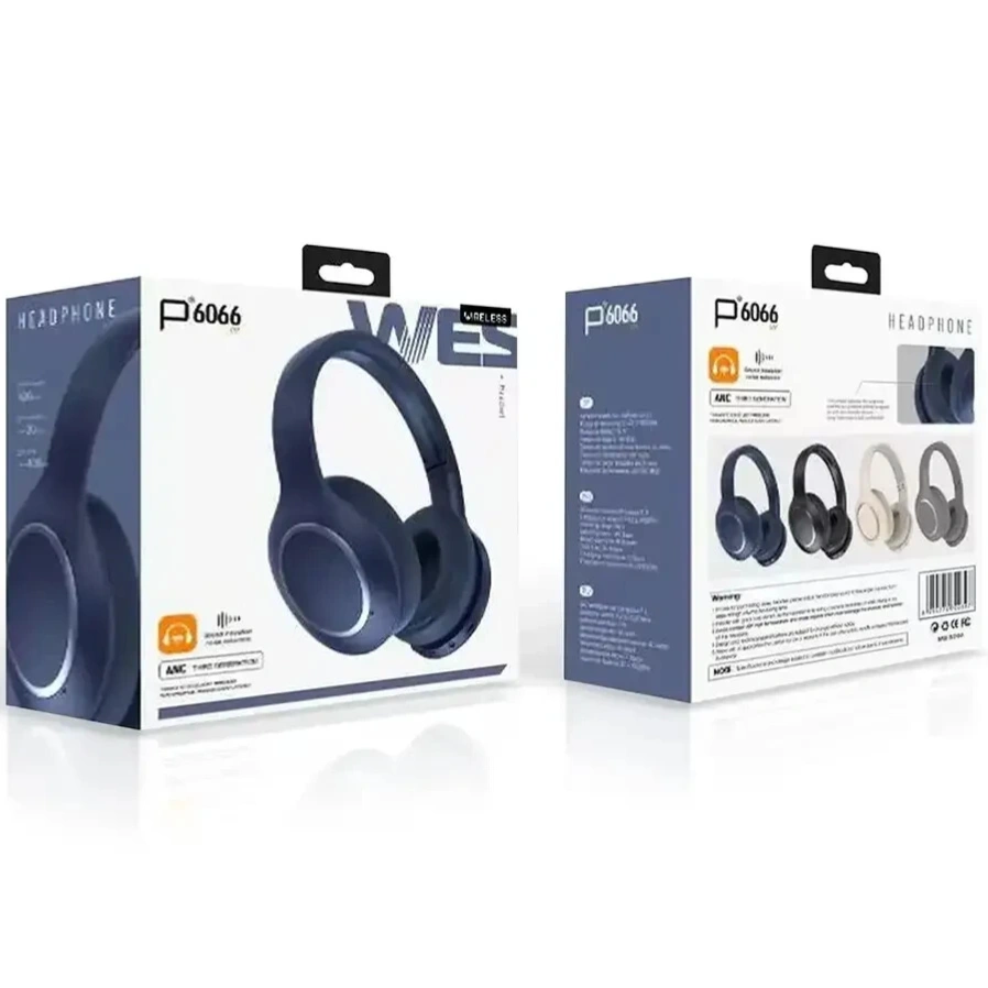 The P6066 headphones are budget-friendly, over-ear wireless headphones featuring Bluetooth 5.3, Active Noise Cancellation (ANC), a built-in mic, and versatile wired/wireless modes (AUX), offering around 15-40 hours of playtime, 40mm drivers, and USB-C charging, with variations in battery capacity and ANC depth depending on the seller, but generally focusing on HiFi sound, portability, and comfort for everyday use.