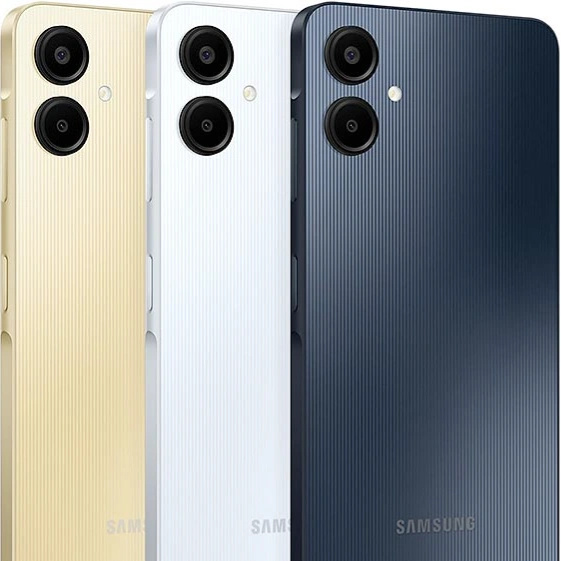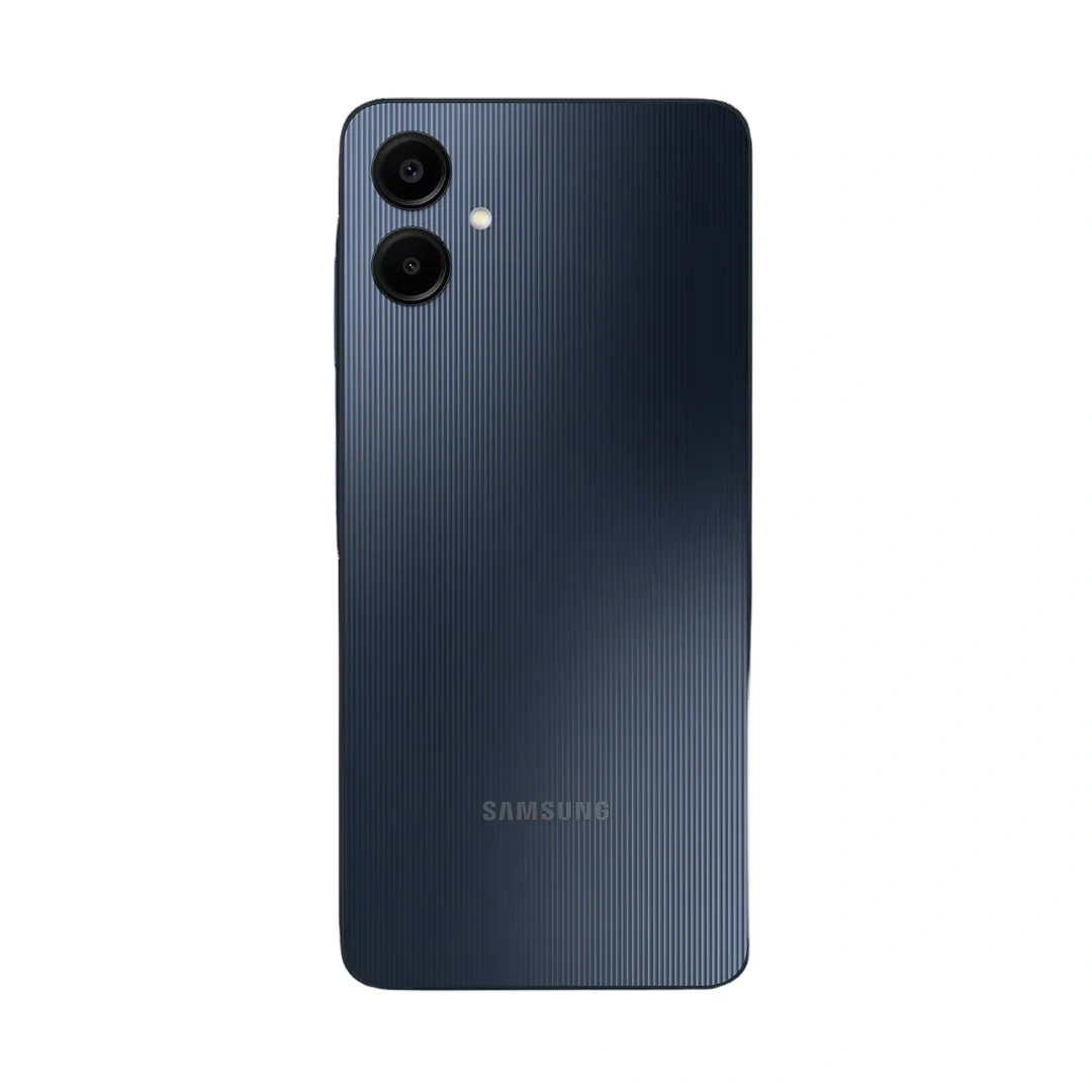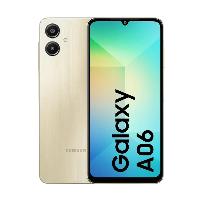 The Samsung Galaxy A06 features a 6.7-inch HD+ PLS LCD display, a MediaTek Helio G85 processor, and a dual rear camera setup with a 50MP main lens and a 2MP depth sensor. It includes a 5000mAh battery, 25W fast charging, 8MP front camera, and storage options of 64GB or 128GB, expandable via microSD. The phone runs on Android 14 with One UI Core and has a side-mounted fingerprint sensor.