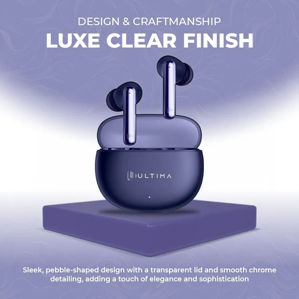 The Ultima Boom 311 specifications include Bluetooth 5.4 connectivity, a total battery life of up to 42 hours with the charging case, and a 45ms low-latency gaming mode. They feature 10mm dual drivers, AI-powered Environmental Noise Cancellation (ENC) with 4 microphones, and are IPX4 water-resistant. The earbuds also support the Ultima Link App for EQ customization and have touch controls.