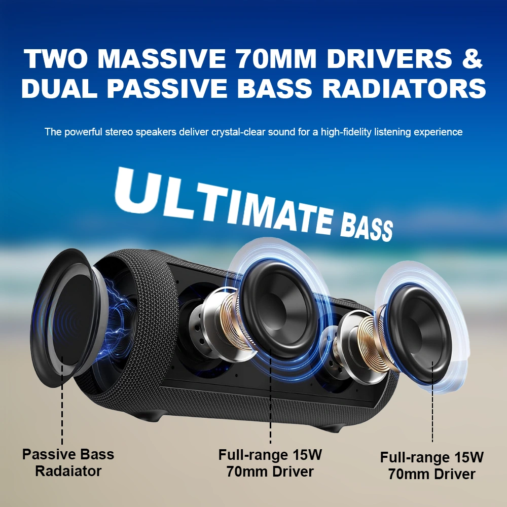 Drivers: Two 70mm (2.75-inch) full-range drivers with dual passive bass radiators.