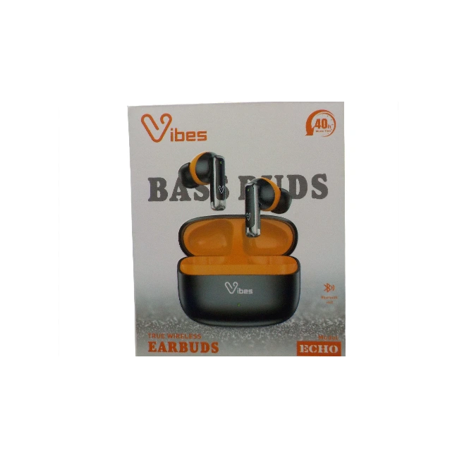 The Vibes Bass Buds Echo earbuds feature Bluetooth 6.0, ENC mics for clear calls, 45ms low-latency gaming mode, touch controls, IPX4 water resistance, and offer ~40 hours total playtime with a 300mAh case and 30mAh buds. They're designed for budget-friendly, feature-rich listening, focusing on bass and gaming, though some specs vary by retailer/model version.