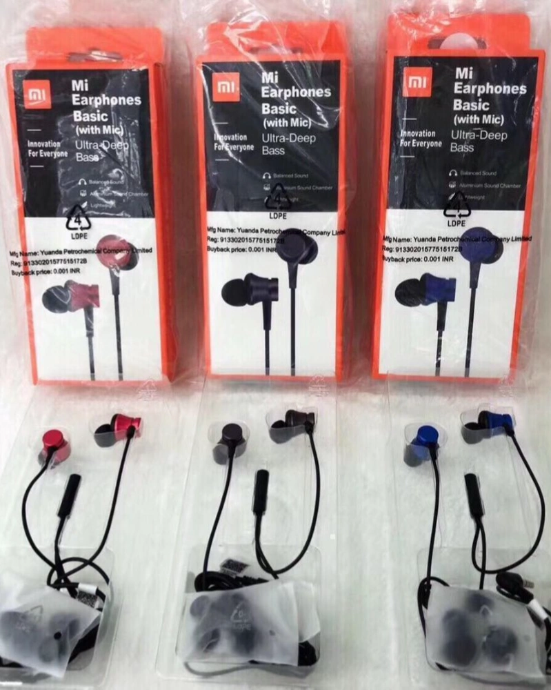 The Xiaomi earphones basic feature an in-ear design with a 1.25m cable and a 3.5mm nickel-plated jack. They have a 32Ω impedance, a frequency response of 20-20,000Hz, and weigh 14g. Other specifications include a 5mW rated power and an in-line microphone for calls and music control.