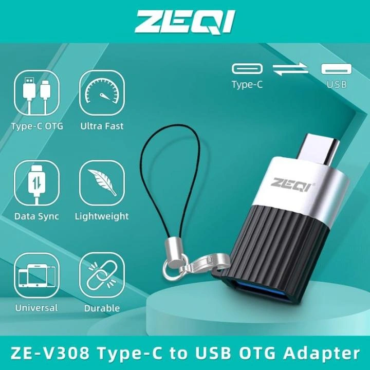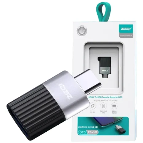 The ZEQI ZE-V308 is a compact USB Type-C to USB-A female OTG (On-The-Go) adapter designed to connect Type-C mobile devices to USB peripherals, such as flash drives, keyboards, game controllers, and mice.